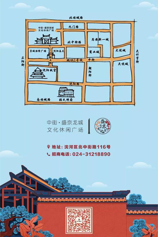 中街·盛京龙城文化休闲广场位于沈阳中街商圈沈河区北中街路116号,毗邻世界文化遗产沈阳故宫,建筑面积约165,000平方米,作为上海复星集团投资兴建,上海豫园股份联手打造的项目,中街·盛京龙城文化休闲广场以打造“盛京城市文化名片”为项目定位。将盛京文化作为项目文化DNA,以时尚流行文化为延展,与城市历史一脉相承。以“历史为依,文化为体,传承为典,时尚为意“的招商理念,将沈阳中街商业全新升级,将历史文化的形、神、韵、名与城市人文生活、流行时尚生活以及商业特色业态相融合,全方位打造盛京城市文化名片。