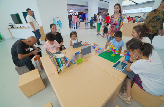 为了给消费者打造购物、体验以外的第三空间,更好的促进与消费者之间紧密互动,体验店专门打造了儿童教育区。该区域是儿童电子产品和益智类游戏的区域,这里的平板有多款交互游戏软件,极大的满足了小朋友的好奇心,同时也配有乐高玩具来培养小朋友的动手能力,这个空间可以提供一个让其孩子临时玩乐的地方。让家长了解到华为产品能培养小孩子的探索精神,记忆训练,手脚协调能力。同时M6平板让小朋友在体验绘画带来乐趣的同时也能感受到科技的力量,平板配备护眼模式、学生模式,让孩子在娱乐中安全适度的学习。